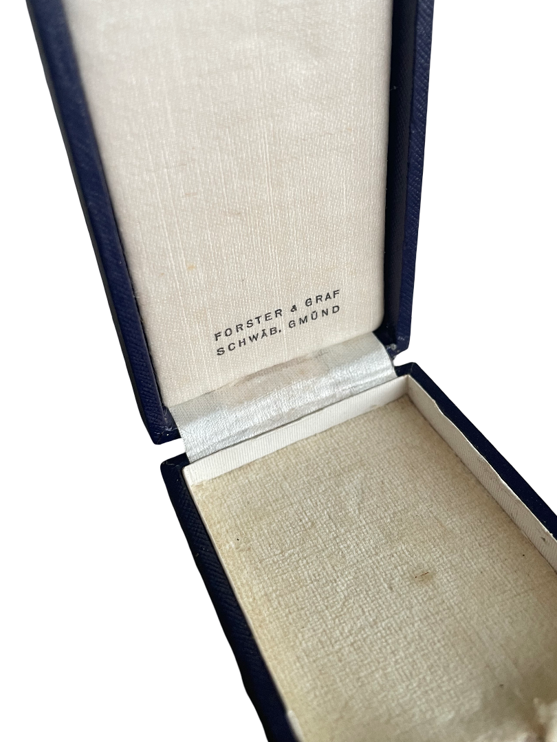 Dit betreft een gouden moederkruis van de maker Forster & Graf Schwäb. Gmünd. In uitzonderlijk mooie staat. Het kruis is vrijwel mint: er zijn geen scheuren, vlekken of zichtbare beschadigingen aanwezig. Het is altijd zorgvuldig bewaard gebleven en is slechts zelden uit het originele doosje gehaald.